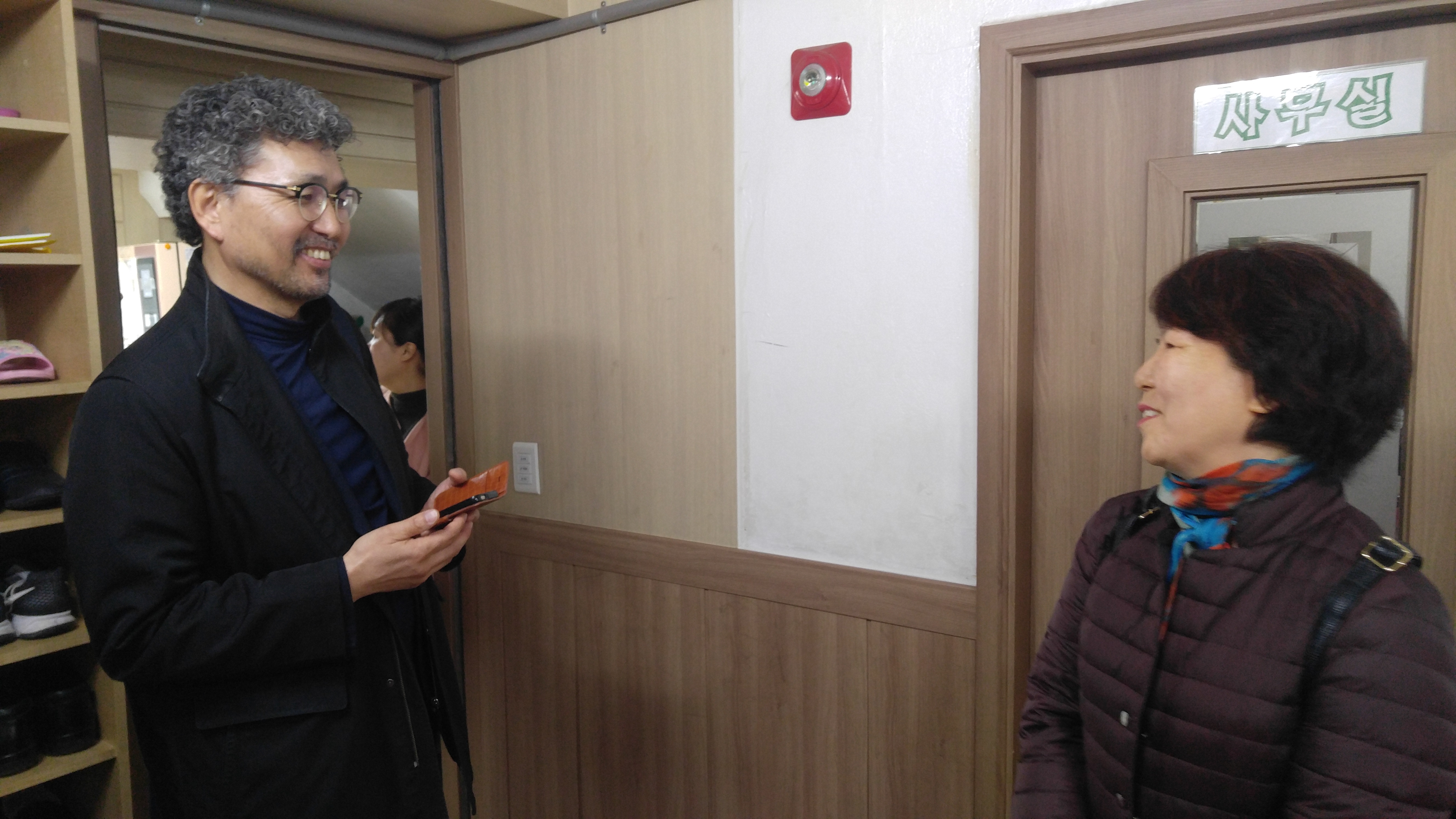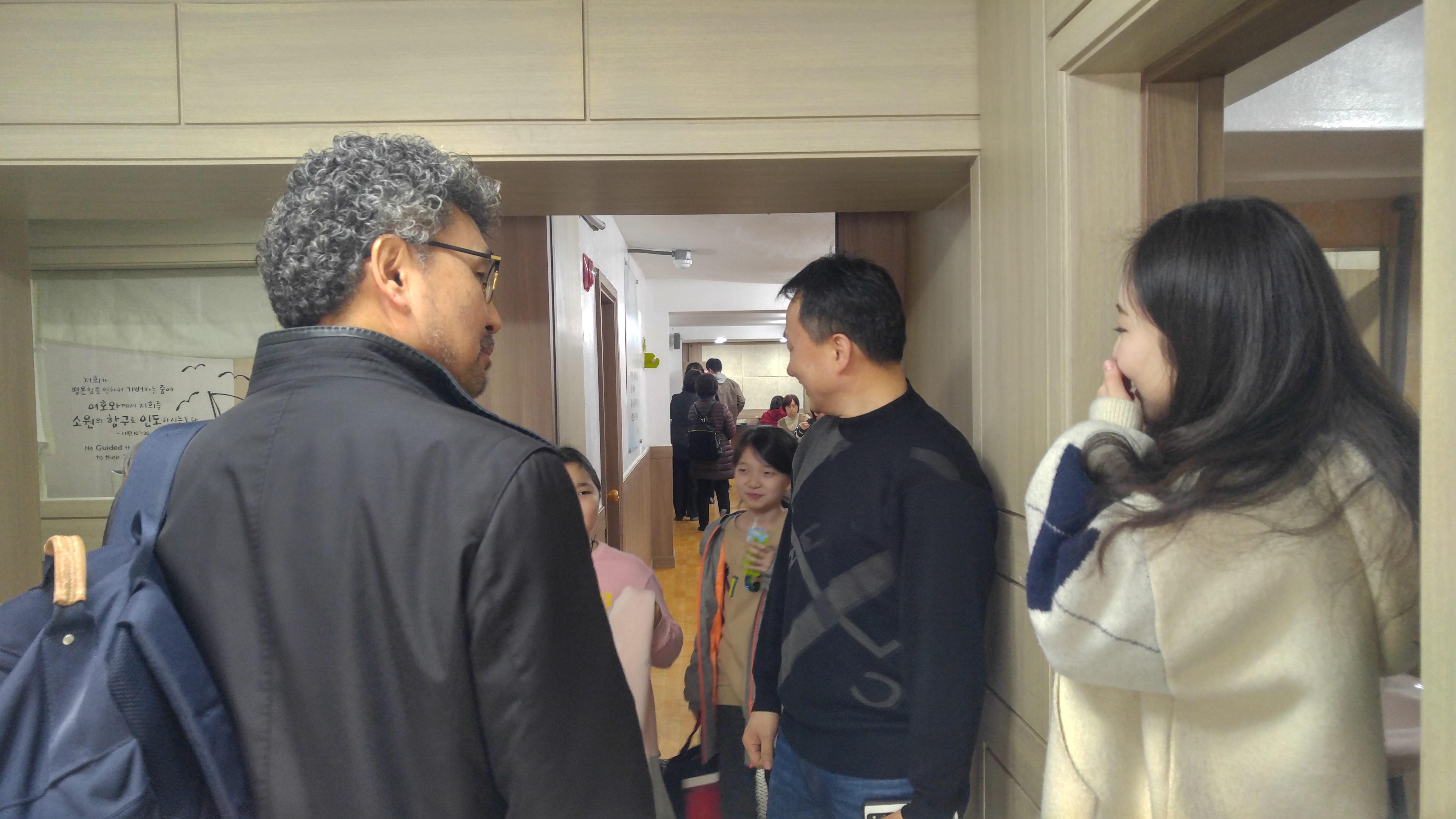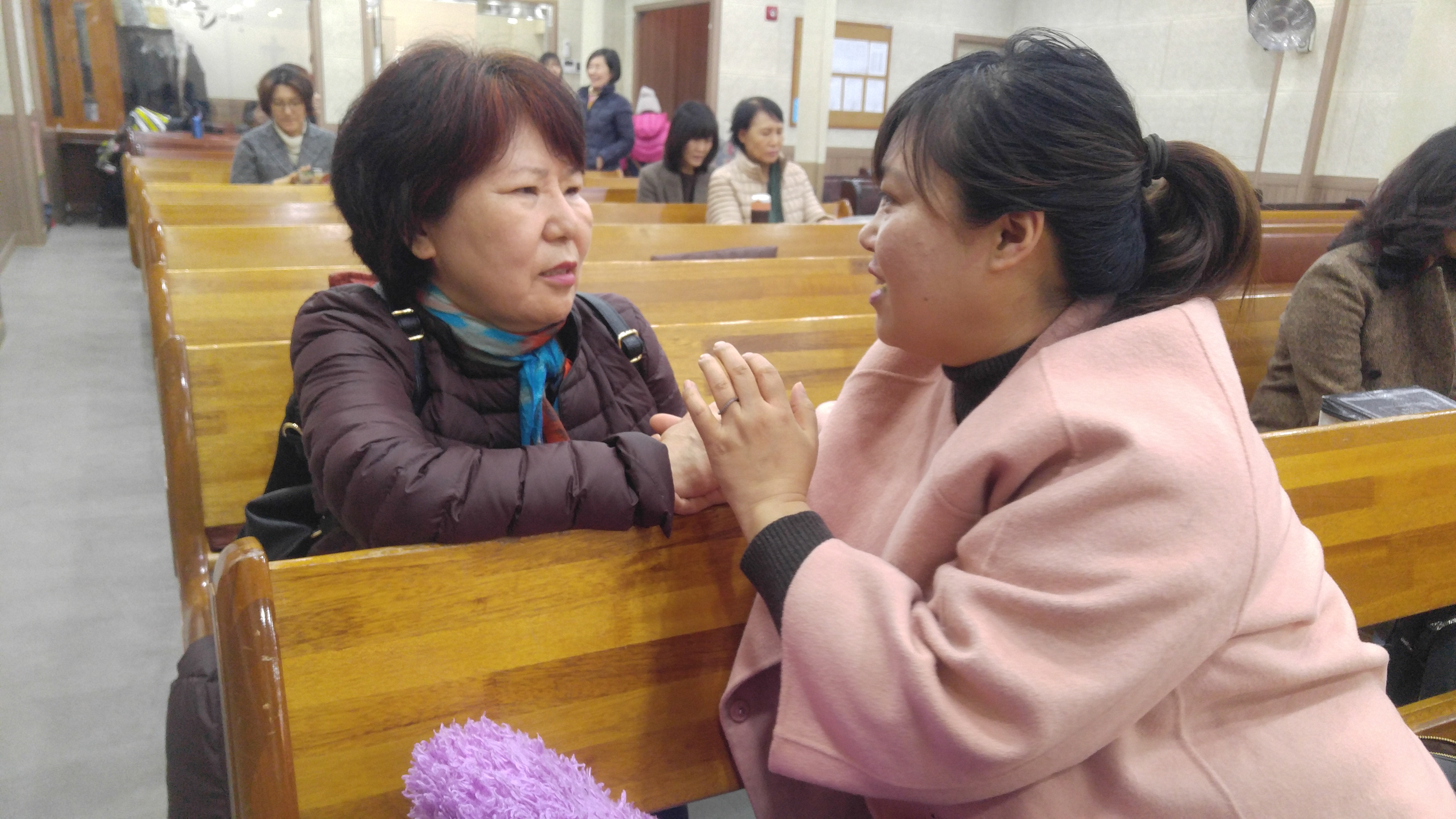 예배 후 담소를 나누고 계시는중