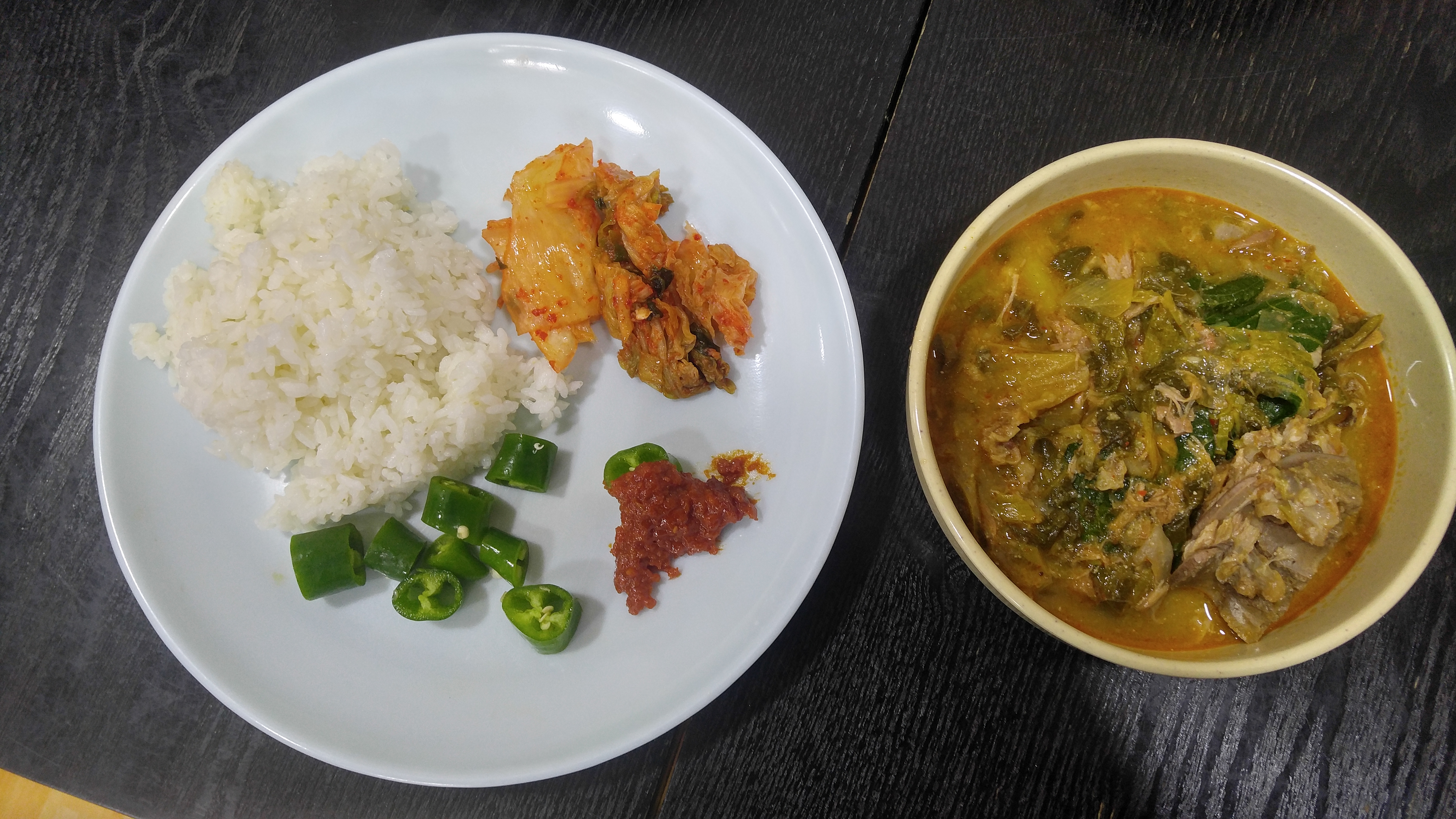 오늘의 식단입니다. 맛있는 감자탕,김치, 감자탕에 빠질수없는 오이고추